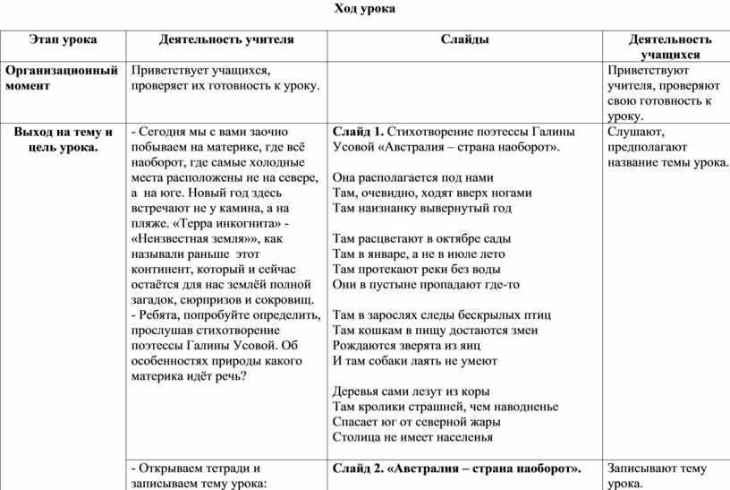 Обобщающий урок по теме «Австралия – страна, где все наоборот»