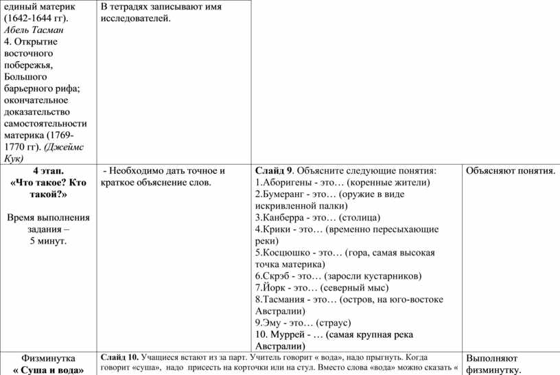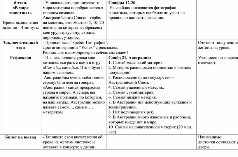 Оборудование: карточки с заданиями, жетоны, физическая карта Австралии, атласы, презентация.