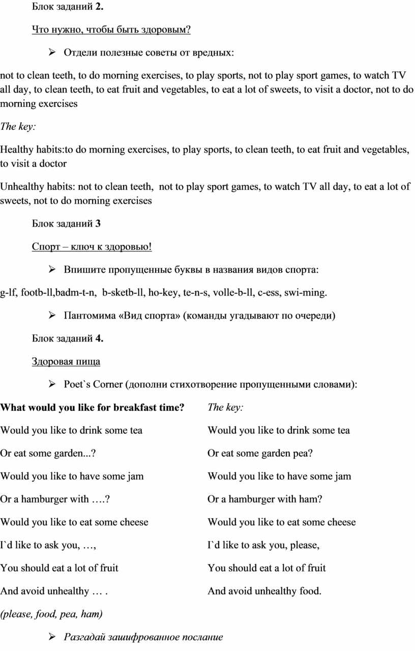 Ø Кто быстрее собeрёт пазл по теме “Health is ...” (Приложения 1,2,3)