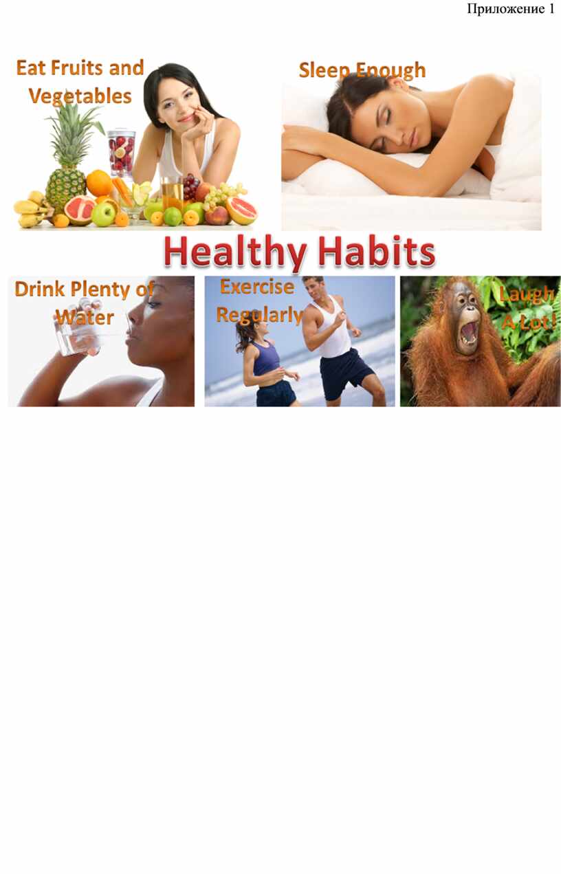Healthy habits:to do morning exercises, to play sports, to clean teeth, to eat fruit and vegetables, to visit a doctor
