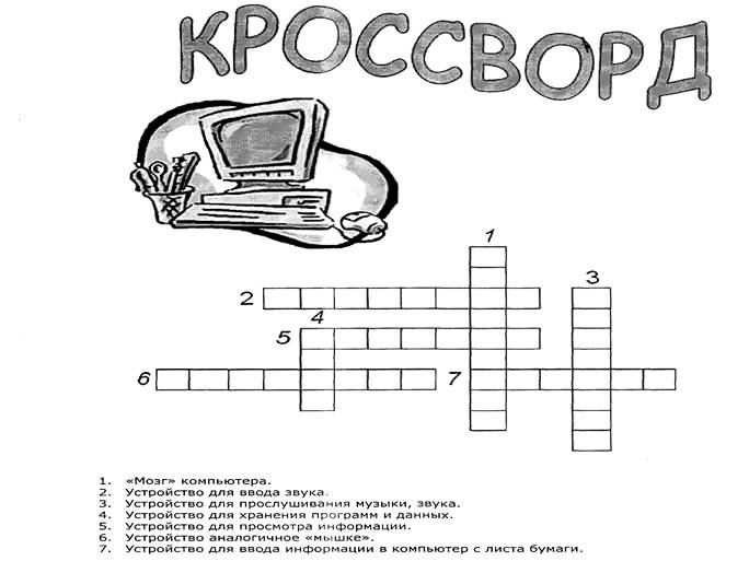 Ответы:1. монитор 2. дисковод; 3. компьютер; 4. память; 5. робот.