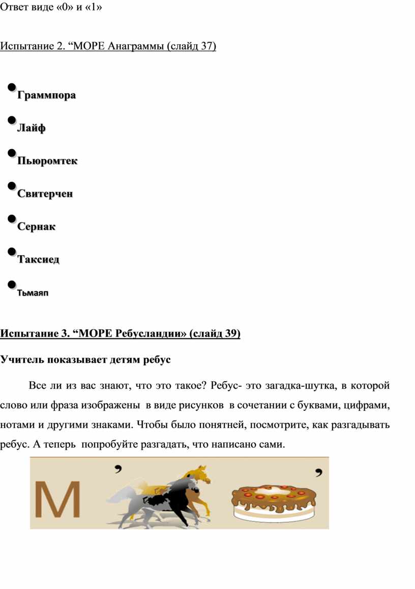 Испытание 2. “МОРЕ Анаграммы (слайд 37)