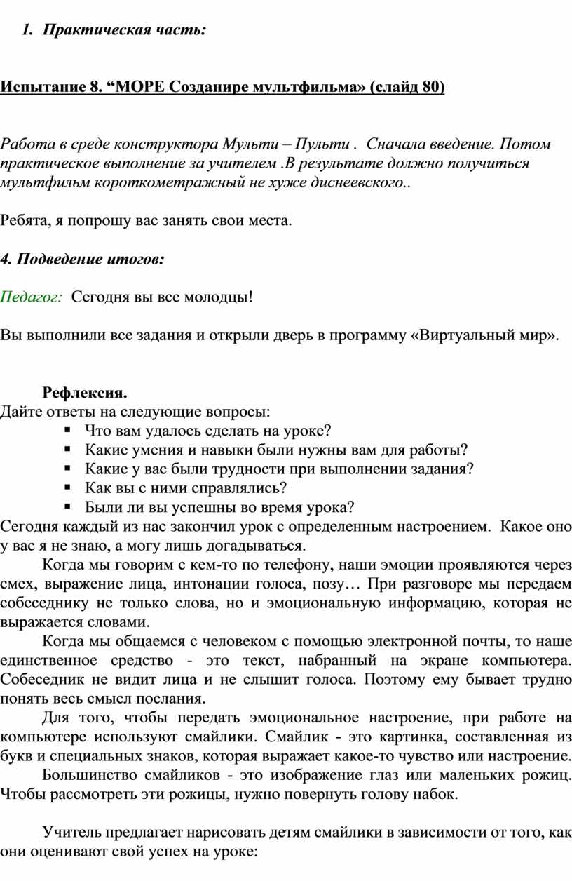 Испытание 8. “МОРЕ Созданире мультфильма» (слайд 80)