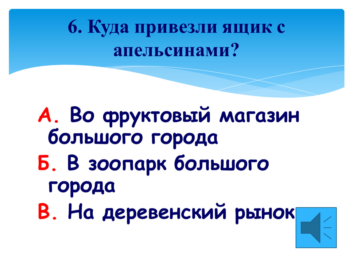 6. Куда привезли ящик с апельсинами?