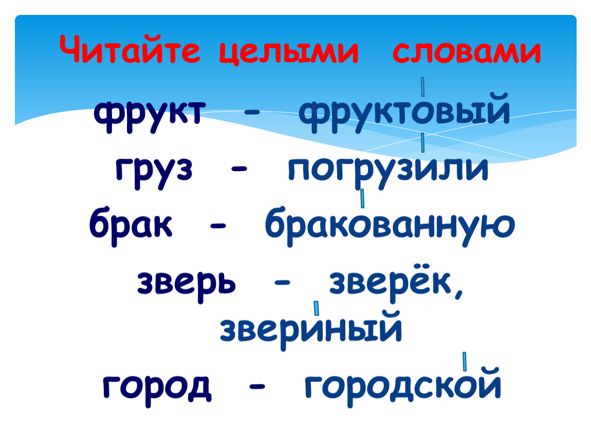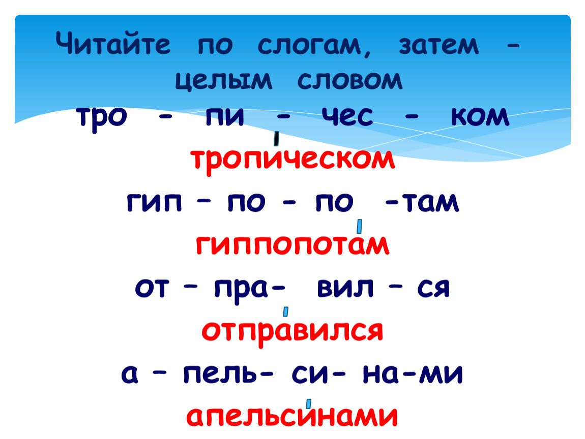 Читайте по слогам, затем - целым словом