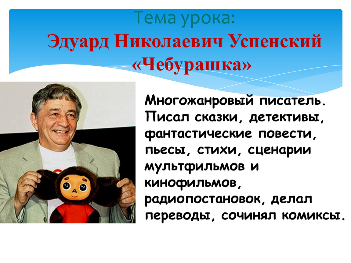 Тема урока: Эдуард Николаевич Успенский «Чебурашка»