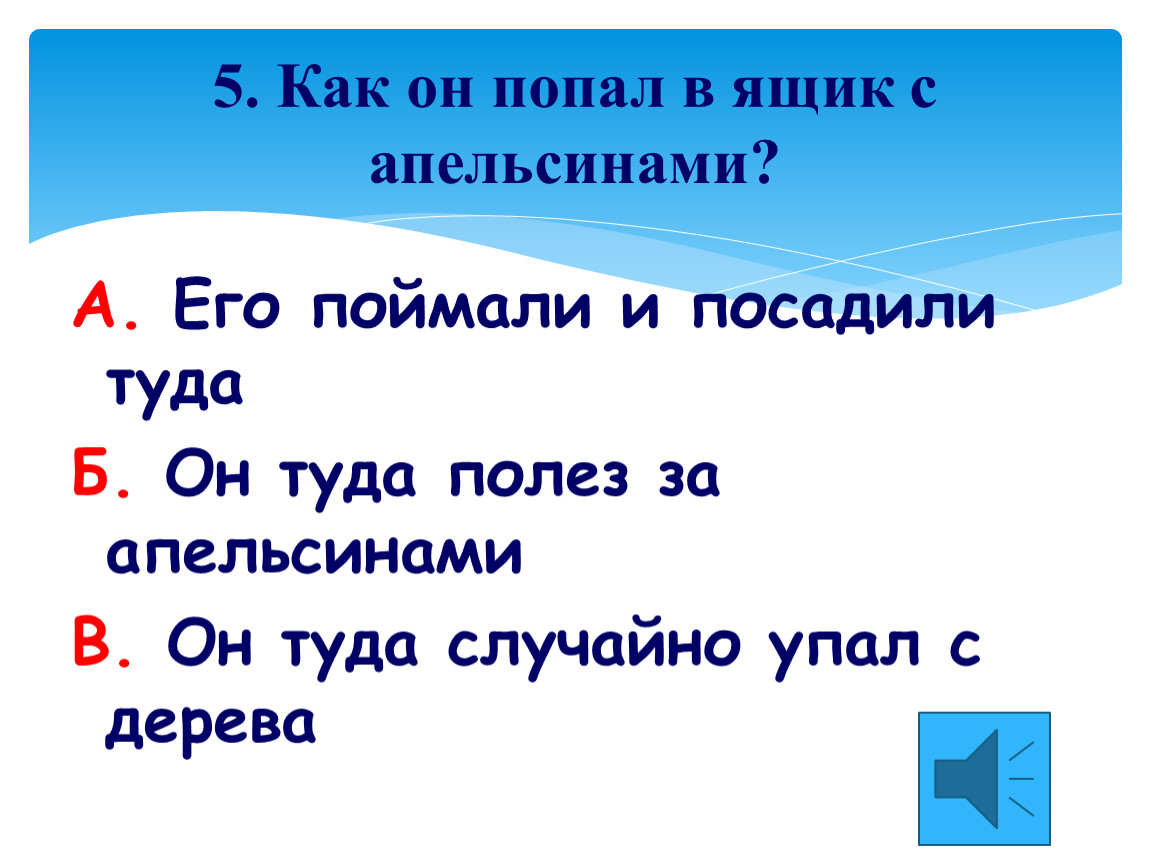5. Как он попал в ящик с апельсинами?