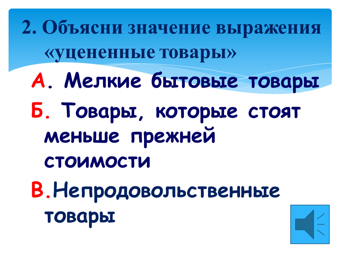 2. Объясни значение выражения «уцененные товары»