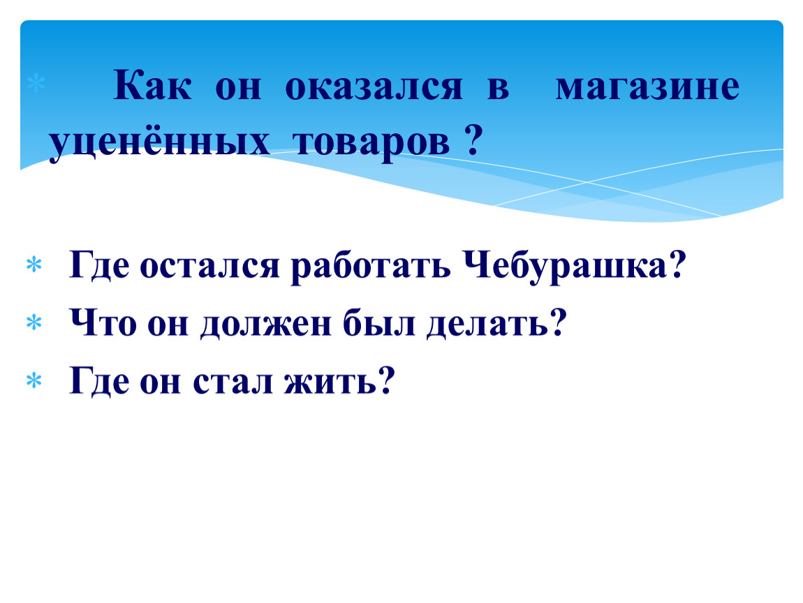 Где остался работать Чебурашка?