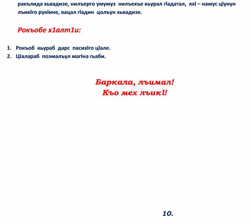 1. Рокъоб кьураб дарс пасихlго цlале.