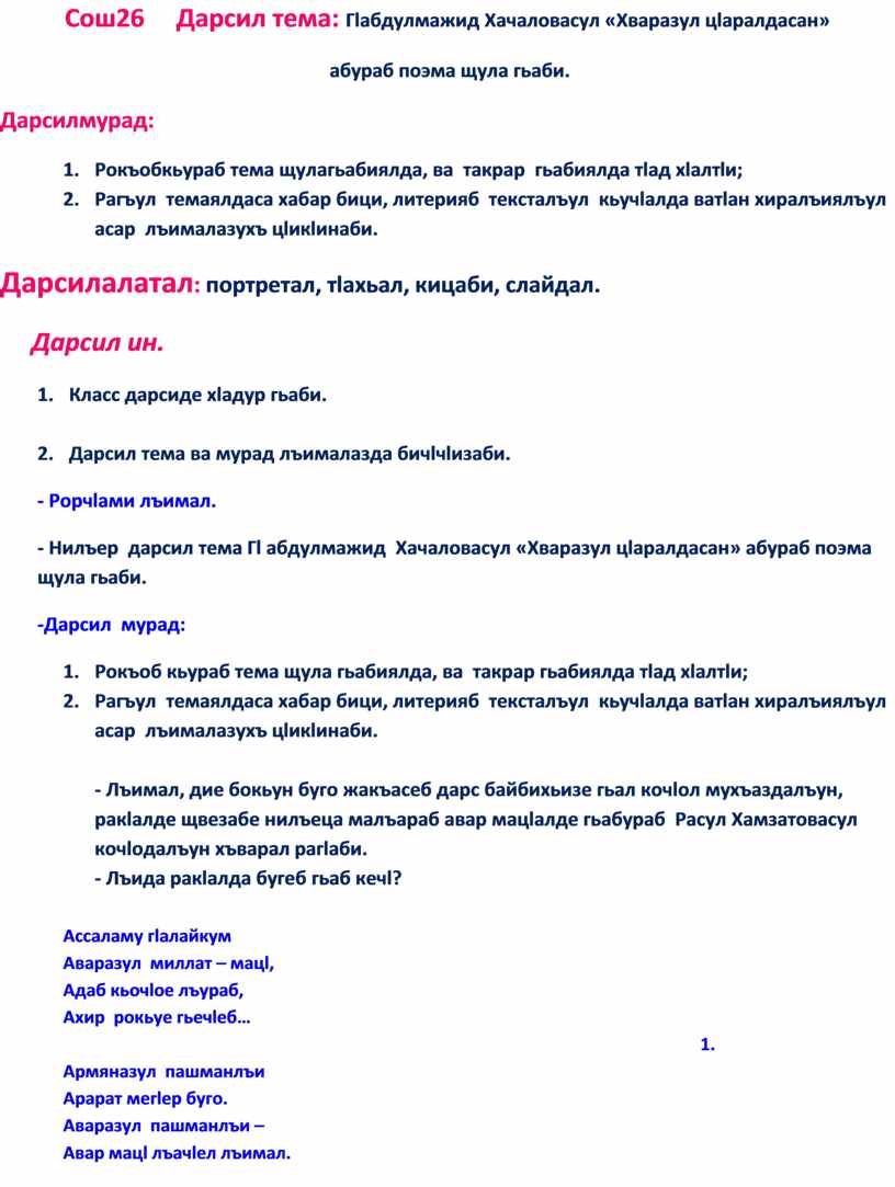 Сош26 Дарсил тема: Гlабдулмажид Хачаловасул «Хваразул цlаралдасан»