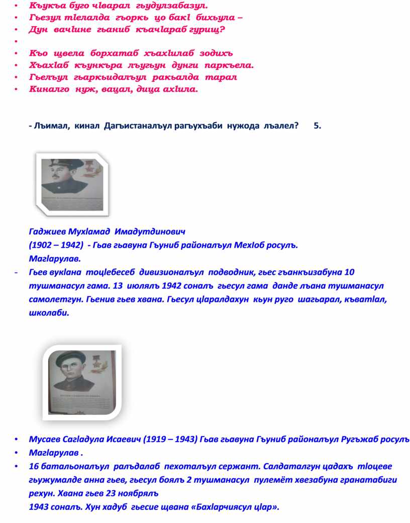 • Мусаев Сагlадула Исаевич (1919 – 1943) Гьав гьавуна Гъуниб районалъул Ругъжаб росулъ
