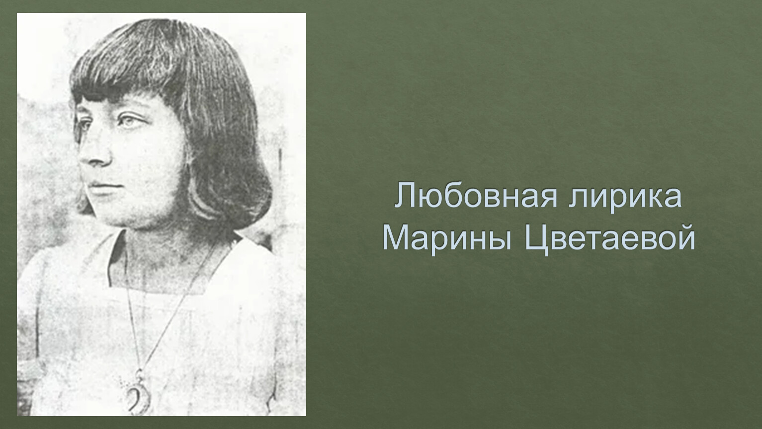 Тема любви в творчестве Марины Цветаевой включает предчувствие любви, её ожидание, расцвет, разочарование в любимом, ревность, боль разлуки. Любовь у поэтессы принимает разные обличья: она может быть тиха, трепетна, благоговейна, нежна, а может быть безоглядна, стихийна, неистова.