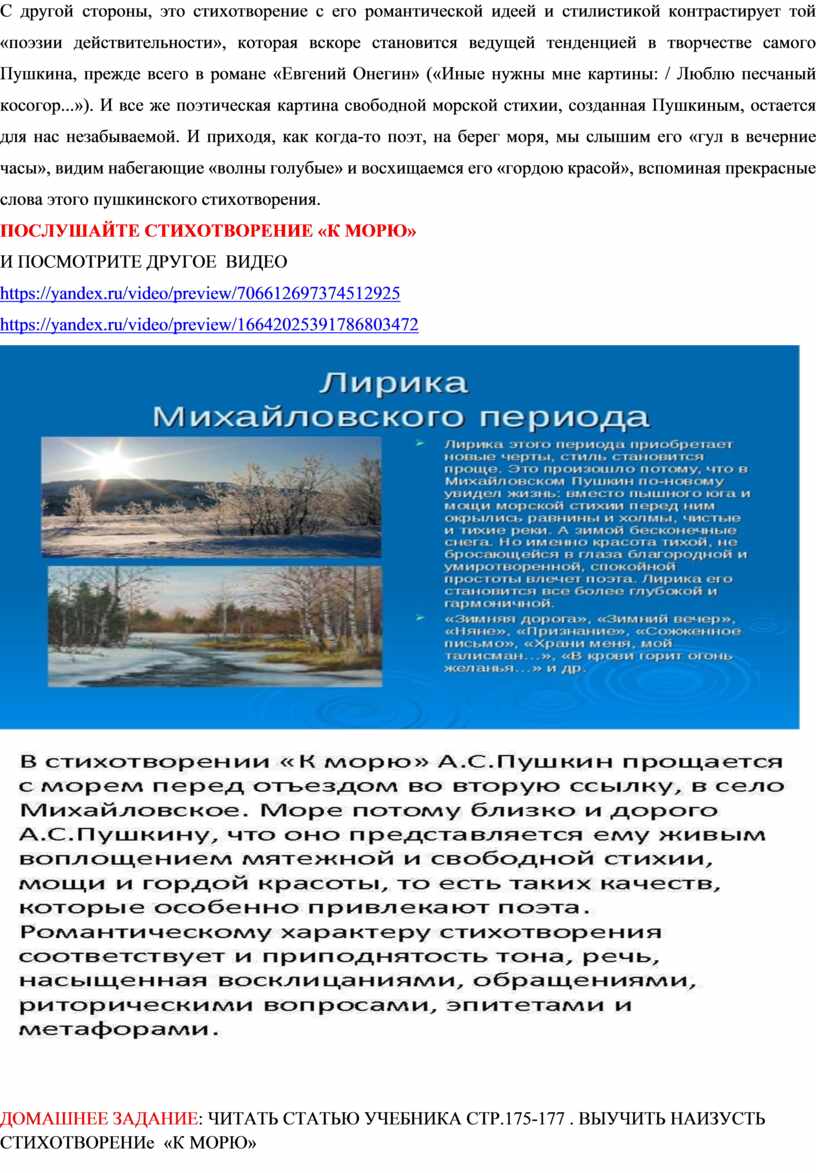 ДОМАШНЕЕ ЗАДАНИЕ: ЧИТАТЬ СТАТЬЮ УЧЕБНИКА СТР.175-177 . ВЫУЧИТЬ НАИЗУСТЬ СТИХОТВОРЕНИе «К МОРЮ»