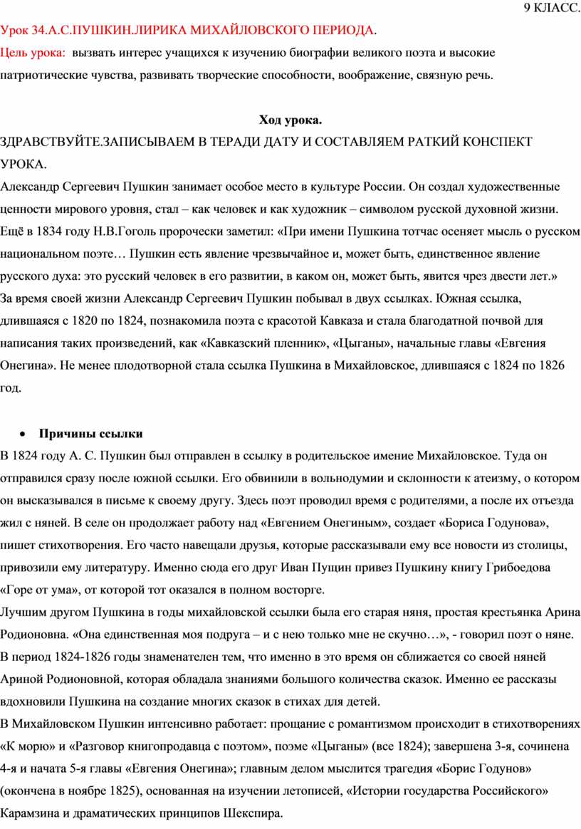 Урок 34.А.С.ПУШКИН.ЛИРИКА МИХАЙЛОВСКОГО ПЕРИОДА.