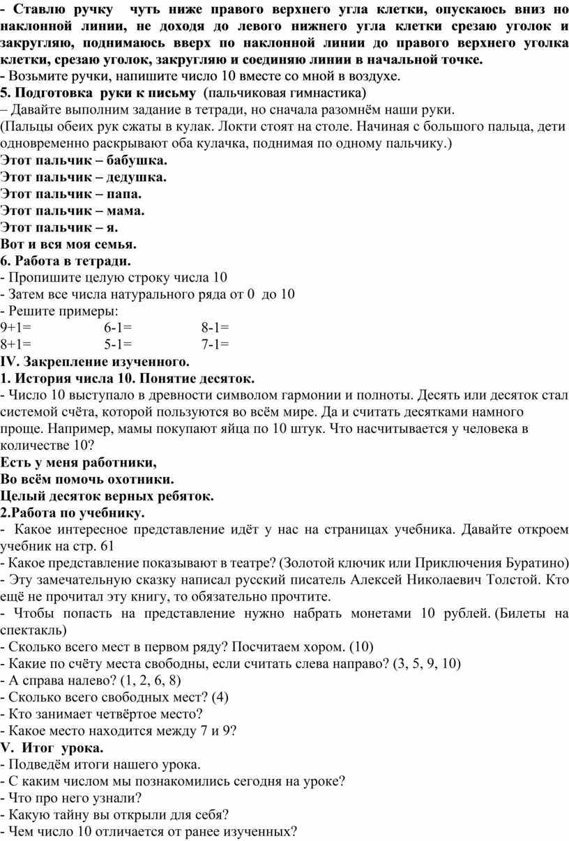 - познакомить с числом 10, с его местом в натуральном ряду, ролью и значением в математике.