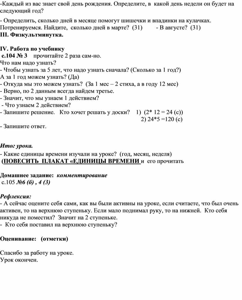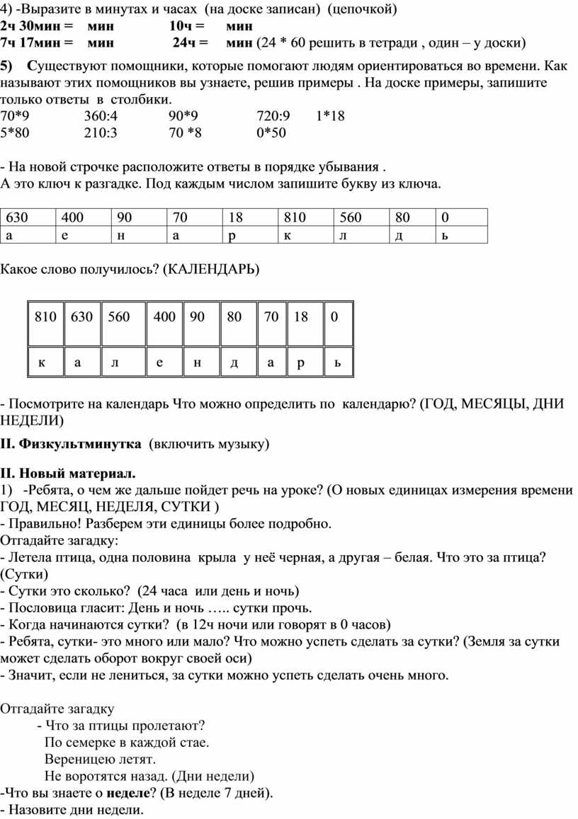 1) -Ребята, о чем же дальше пойдет речь на уроке? (О новых единицах измерения времени ГОД, МЕСЯЦ, НЕДЕЛЯ, СУТКИ )