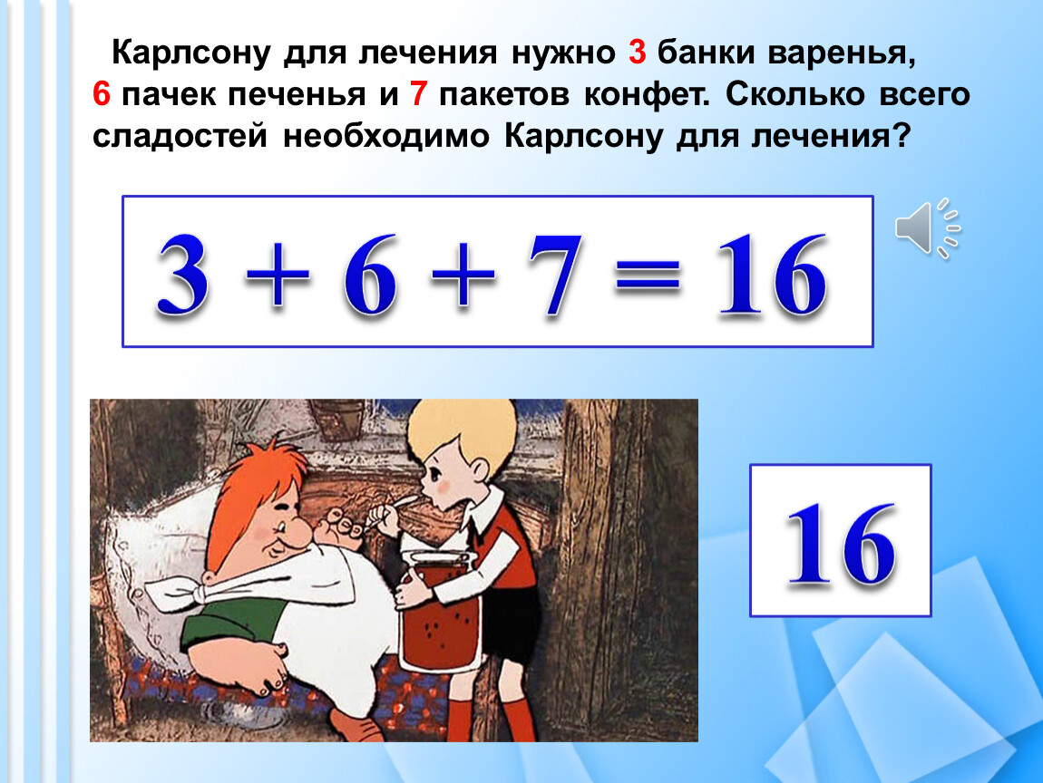 6 пачек печенья и 7 пакетов конфет. Сколько всего
