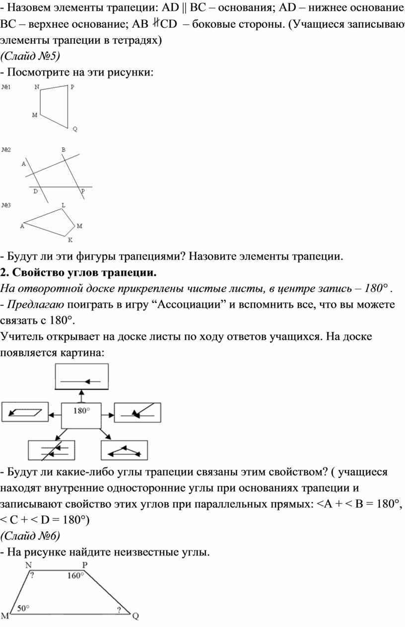 1. Определение трапеции и ее элементов.