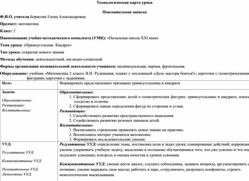 Технологическая карта урока