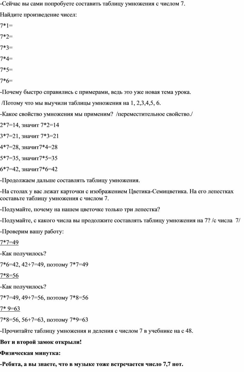 -Подумайте, с какого числа вы продолжите составлять таблицу умножения на 7? /с числа 7/
