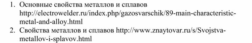 2. Основные свойства металлов и сплавов http://electrowelder.ru/index.php/gazosvarschik/89-main-characteristic-metal-and-alloy.html