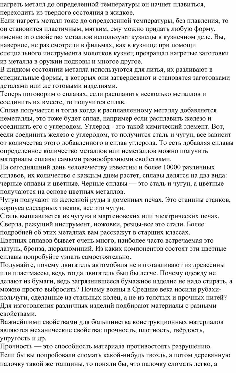 Учитель: Для чего нам нужно знать свойства металлов и сплавов?