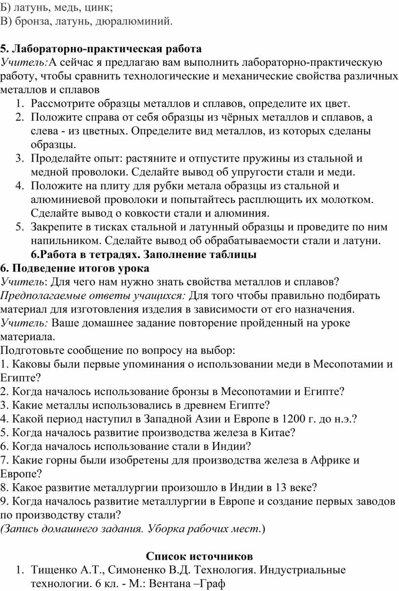 1. Тищенко А.Т., Симоненко В.Д. Технология. Индустриальные технологии. 6 кл. - М.: Вентана –Граф
