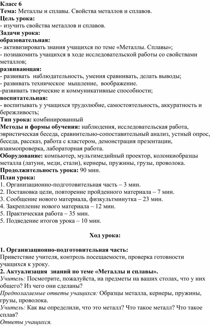 Учитель: Как вы определили, что это металл? Что такое металл? Что такое сплав?