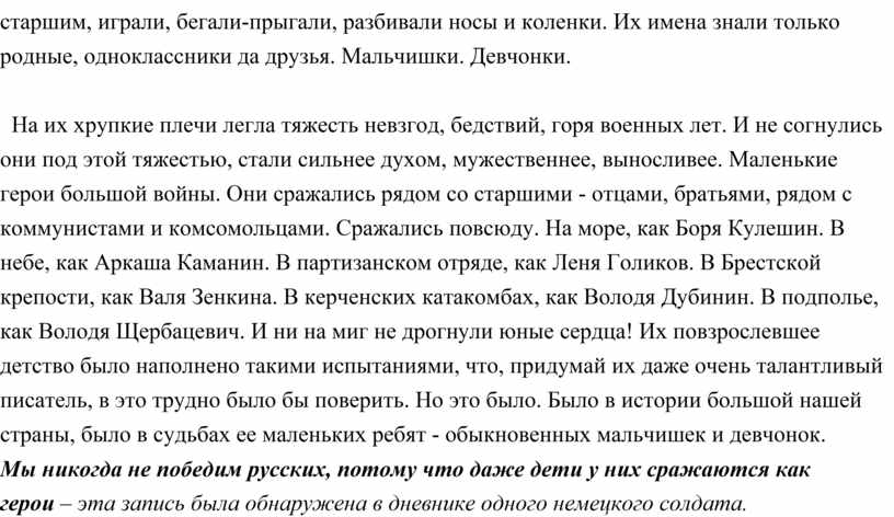 Мы никогда не победим русских, потому что даже дети у них сражаются как герои – эта запись была обнаружена в дневнике одного немецкого солдата.
