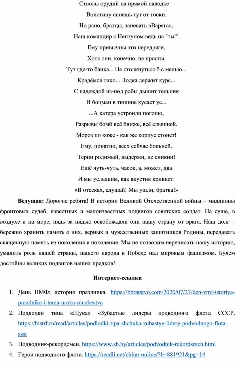 1. День ВМФ: история праздника. https://bbratstvo.com/2020/07/27/den-vmf-istoriya-prazdnika-i-tema-uroka-muzhestva