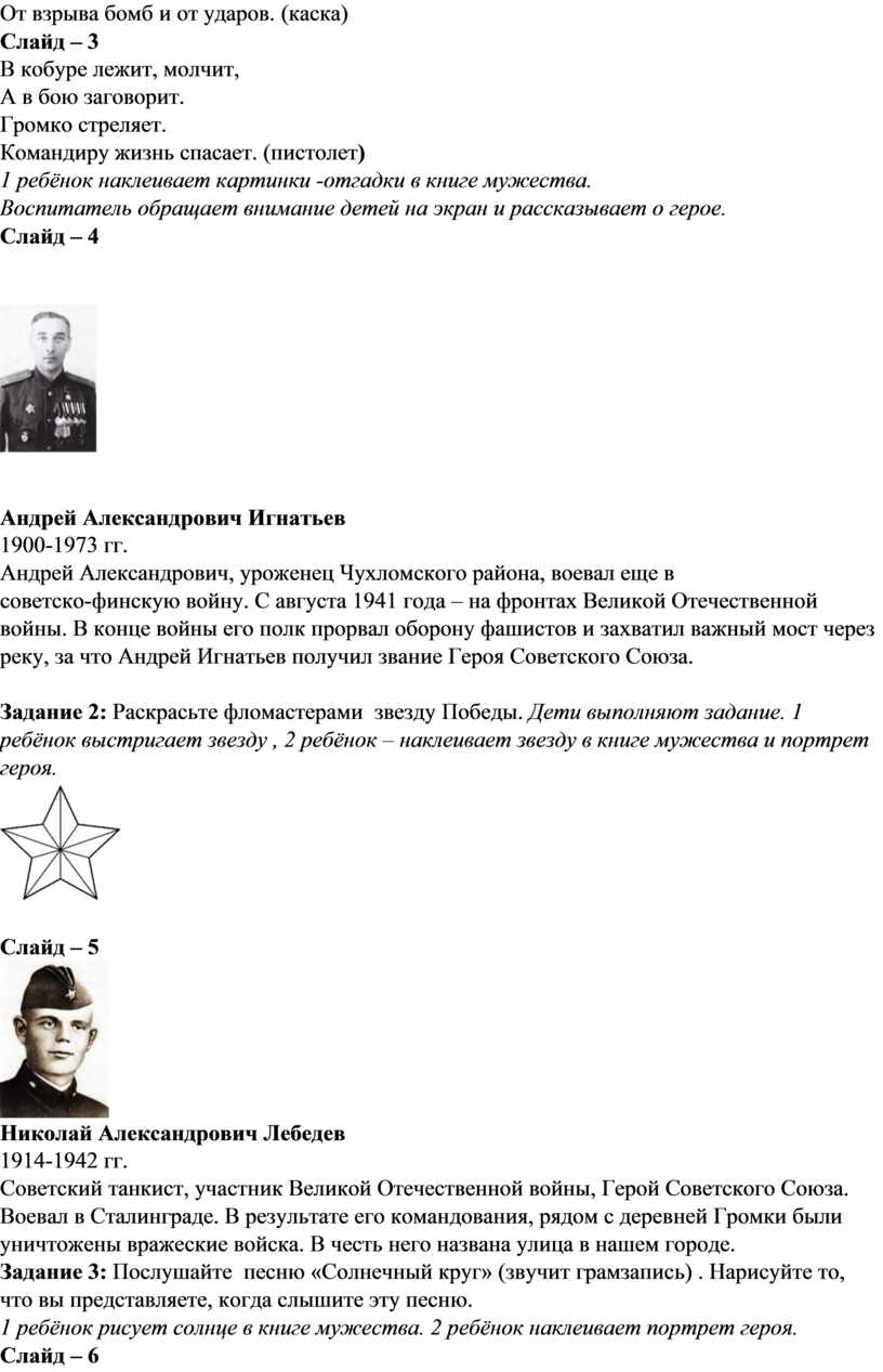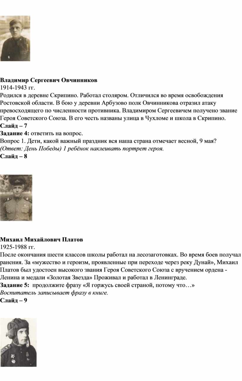 Цель: ознакомление детей с героями чухломской земли, участвовавших в ВОВ.