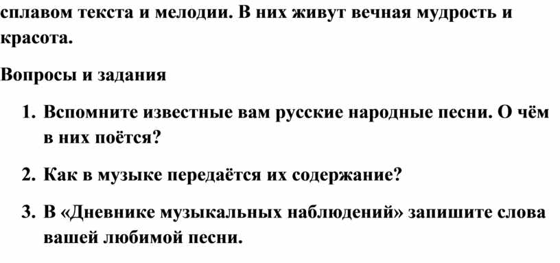 1. Вспомните известные вам русские народные песни. О чём в них поётся?
