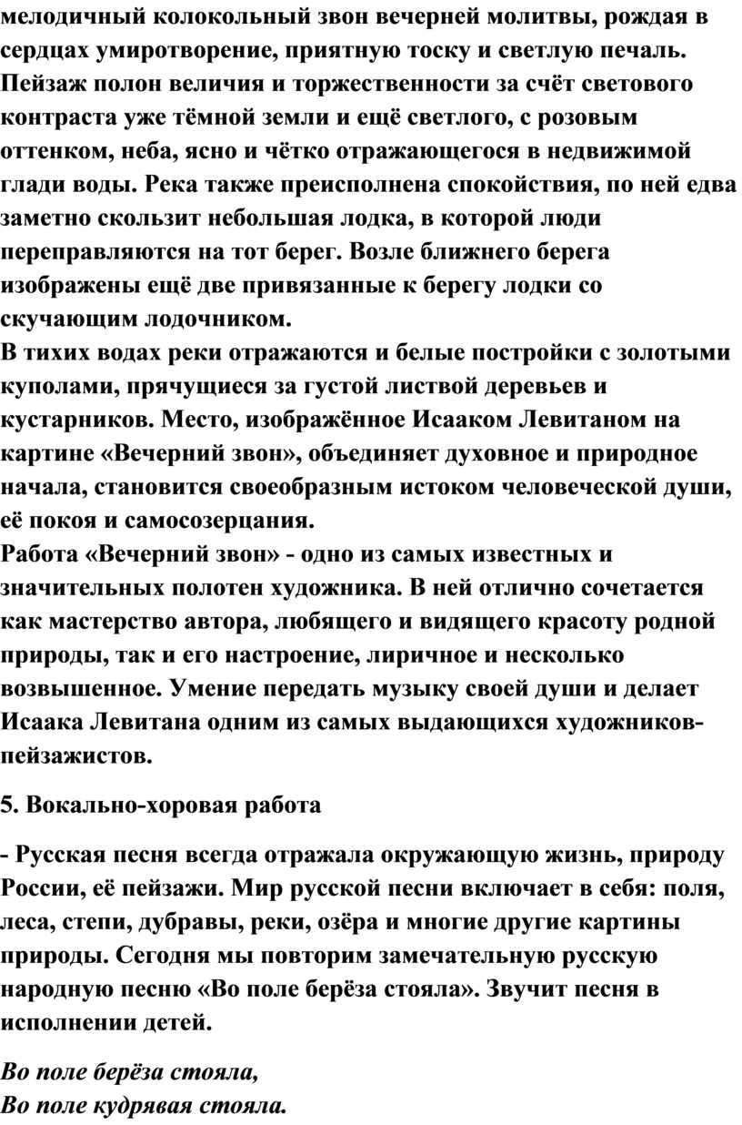 4. Рассматривание картины И. Левитана «Вечерний звон»