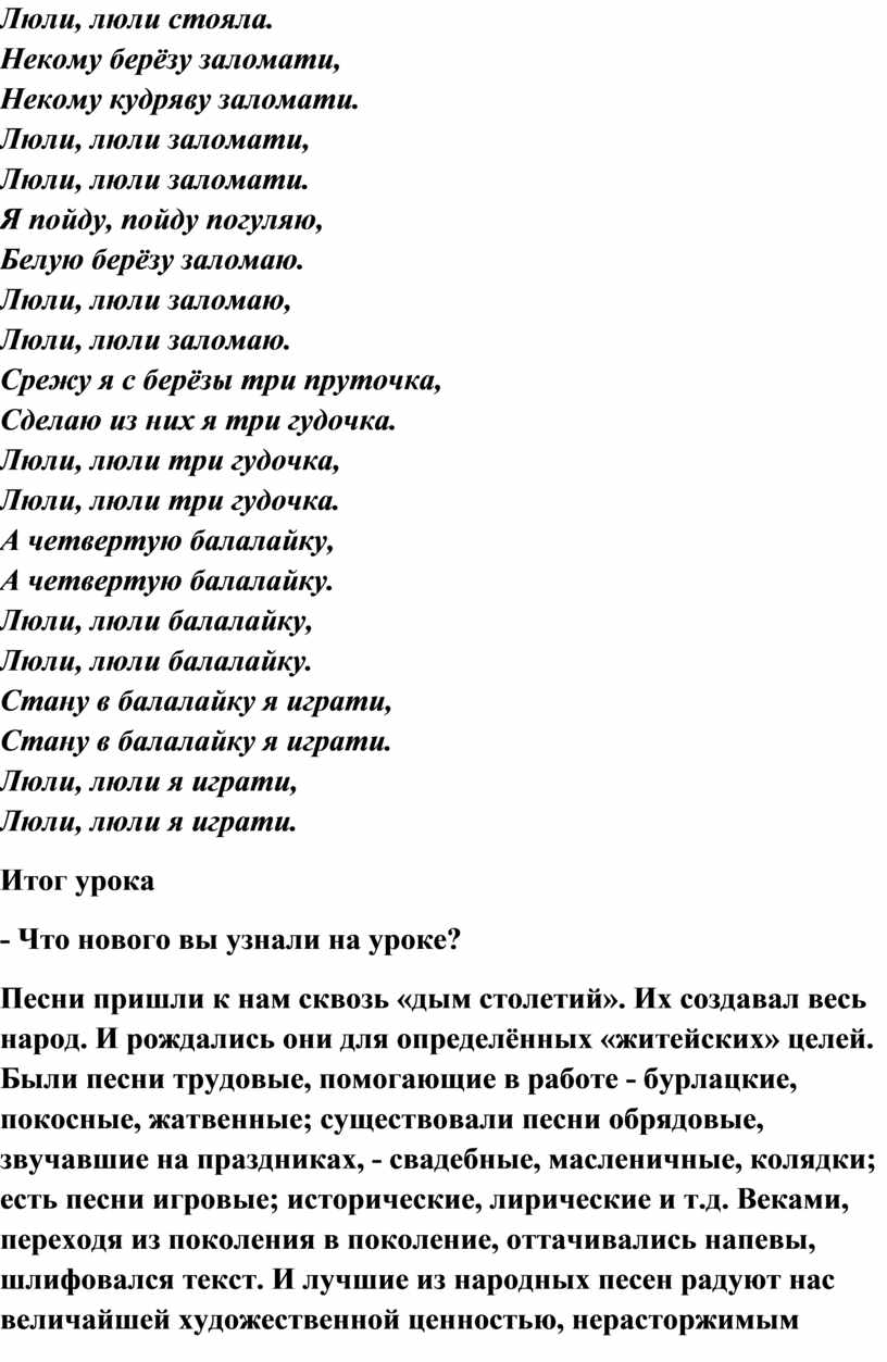 Люли, люли балалайку,