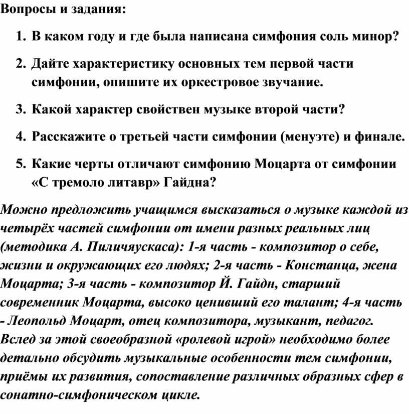 5. Какие черты отличают симфонию Моцарта от симфонии «С тремоло литавр» Гайдна?