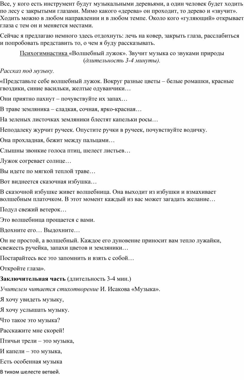 Психогимнастика «Волшебный лужок». Звучит музыка со звуками природы (длительность 3-4 минуты).