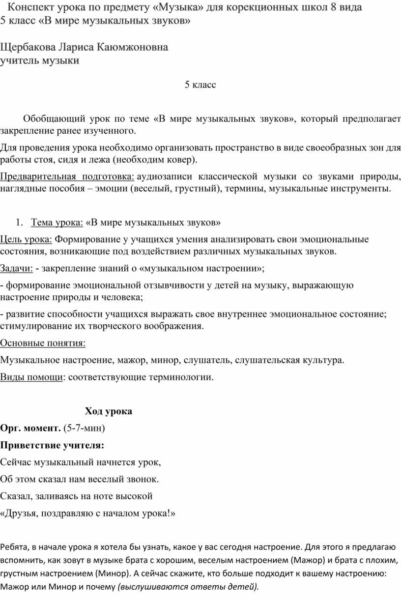 Обобщающий урок по теме «В мире музыкальных звуков», который предполагает закрепление ранее изученного.