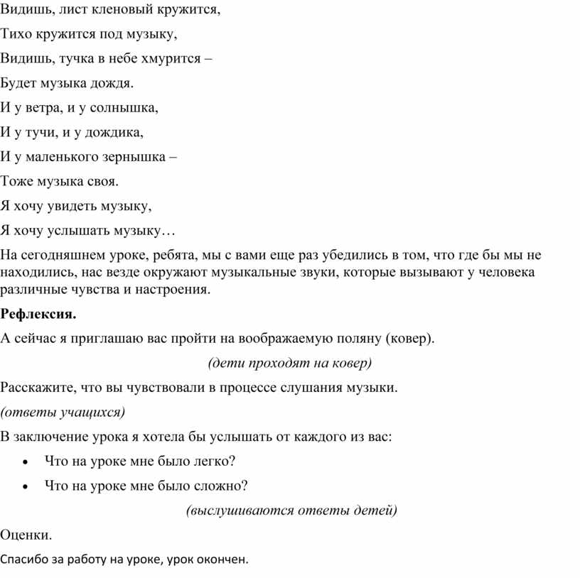 На сегодняшнем уроке, ребята, мы с вами еще раз убедились в том, что где бы мы не находились, нас везде окружают музыкальные звуки, которые вызывают у человека различные чувства и настроения.