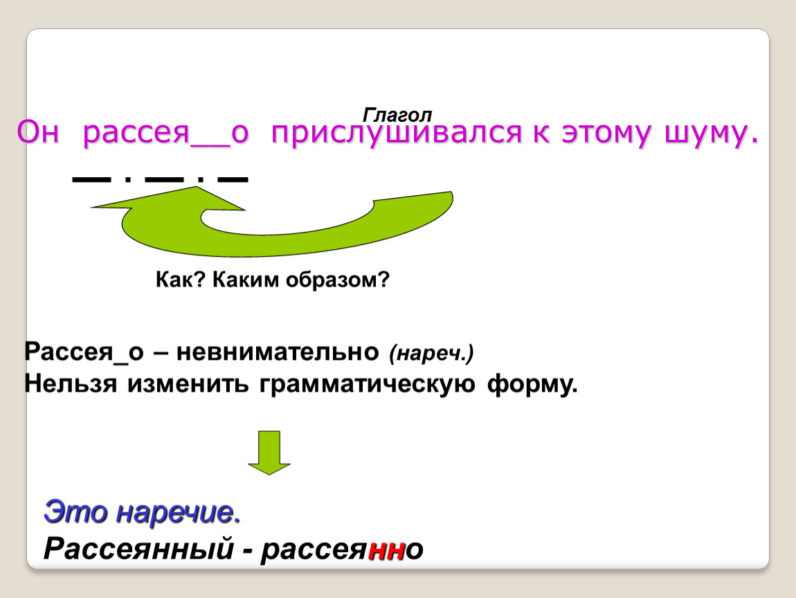 Рассея_о – невнимательно (нареч.)
