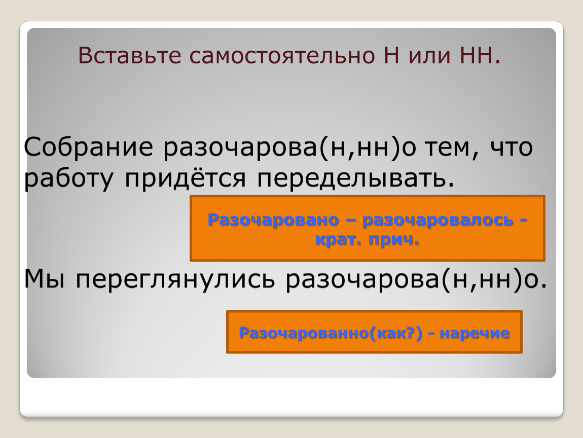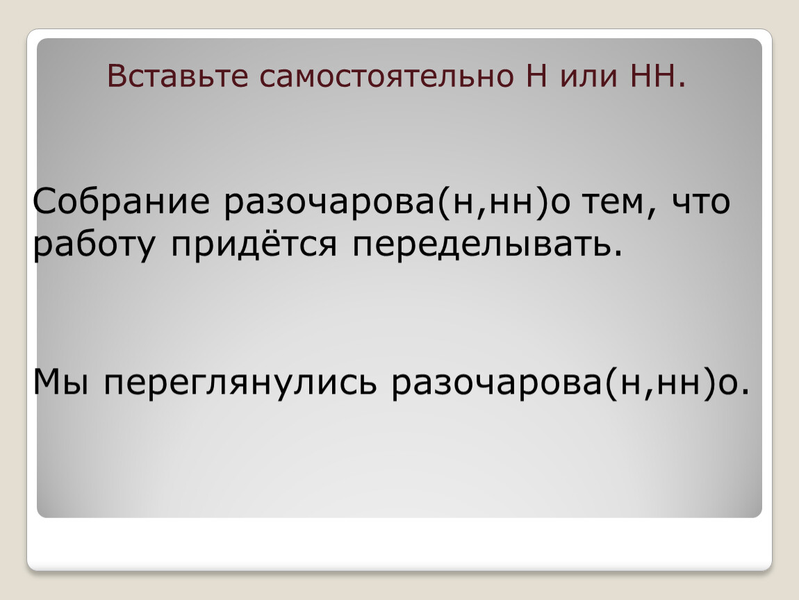 Собрание разочарова(н,нн)о тем, что работу придётся переделывать.