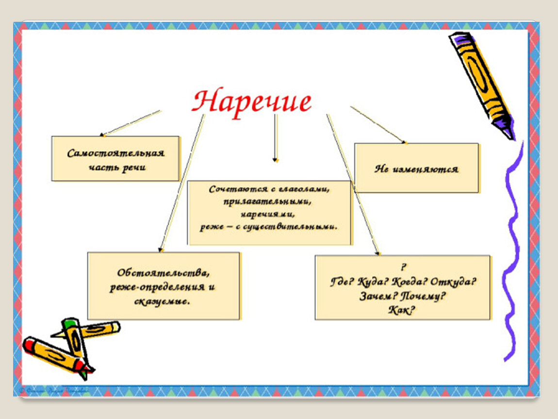 Наречия образуются от прилагательных, причастий.