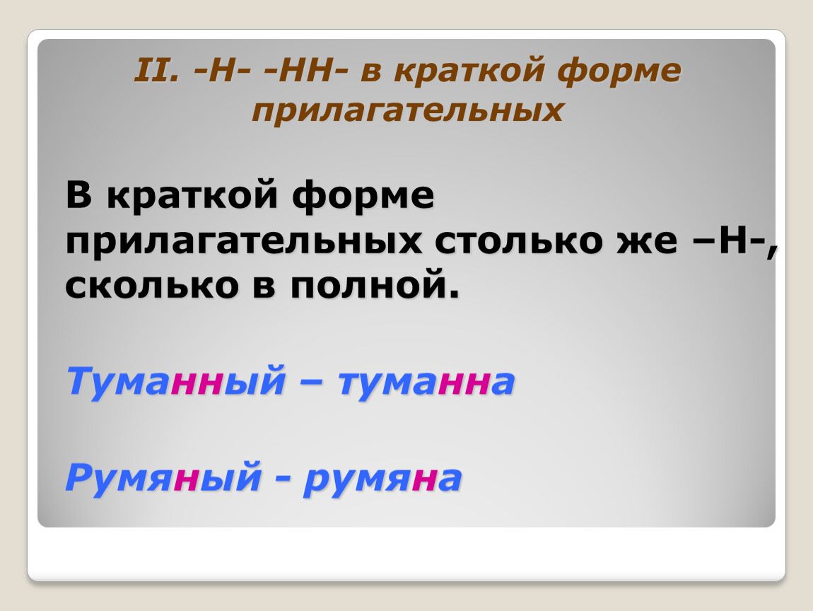II. -Н- -НН- в краткой форме прилагательных