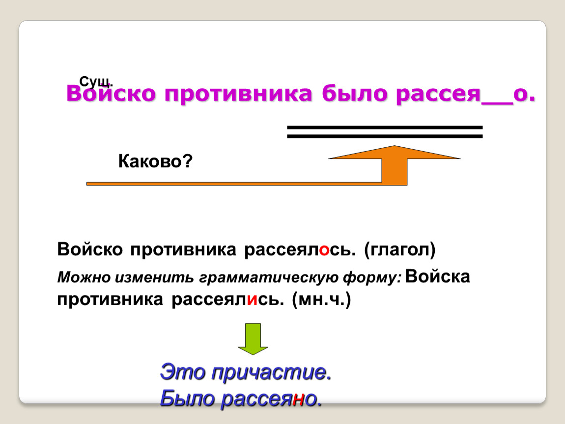 Войско противника рассеялось. (глагол)