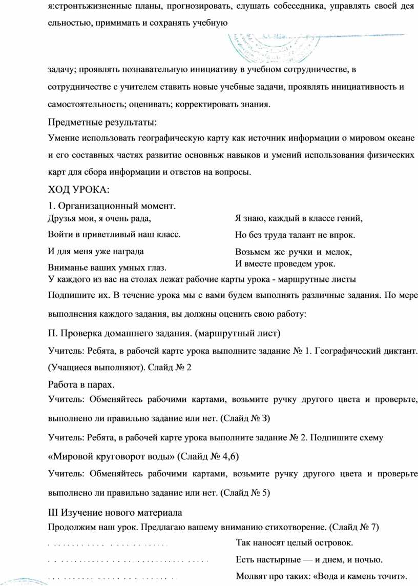 У каждого из вас на столах лежат рабочие карты урока - маршрутные листы