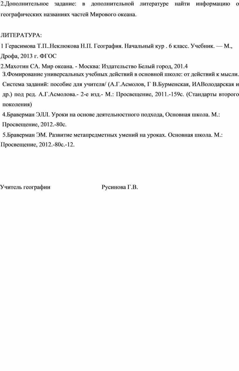 2.Дополнительное задание: в дополнительной литературе найти информацию о географических названиях частей Мирового океана.