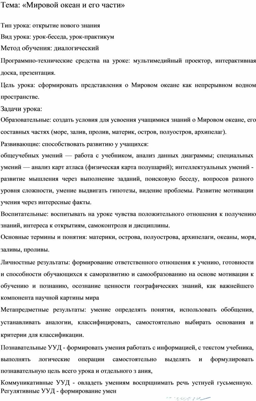 Образовательные: создать условия для усвоения учащимися знаний о Мировом океане, его составных частях (море, залив, пролив, материк, остров, полуостров, архипелаг).