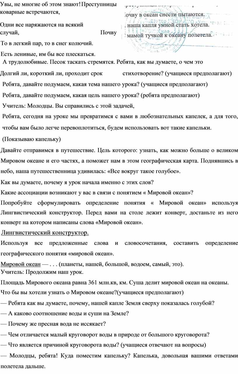Попробуйте сформулировать определение понятия « Мировой океан» используя Лингвистический конструктор. Перед вами на столе лежит конверт, достаньте из него конверт на котором написаны слова «Мировой океан».