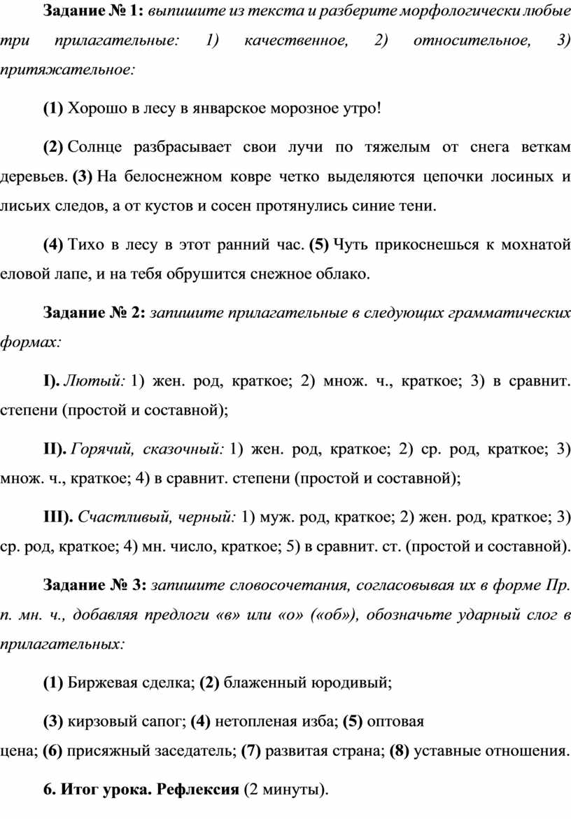 Задание № 1: выпишите из текста и разберите морфологически любые три прилагательные: 1) качественное, 2) относительное, 3) притяжательное:
