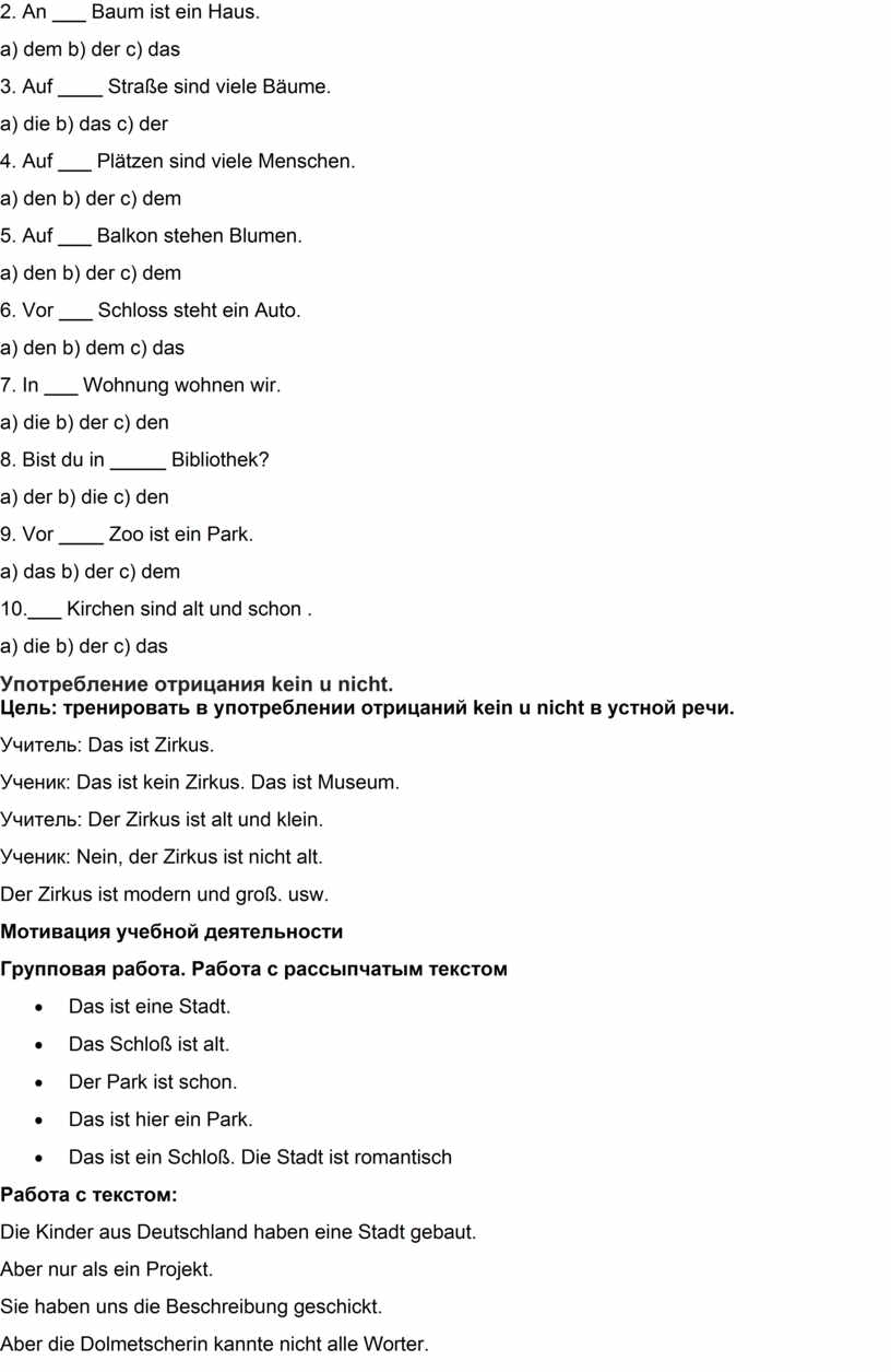 Цель: тренировать в употреблении отрицаний kein u nicht в устной речи.